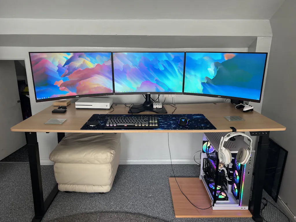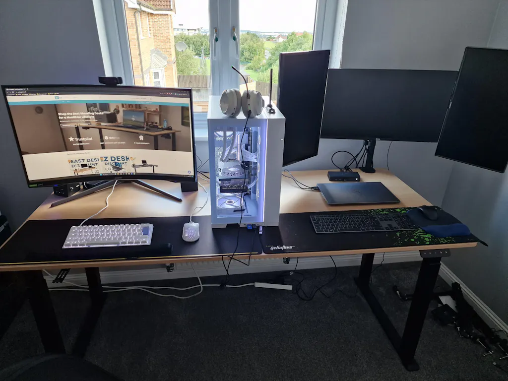 The strongest and most flexible standing desk design the UK has ever seen. Dual motor design and double vertical supports enable this desk to handle some truly breathtaking setups.